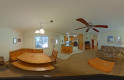 The Bears Den upper floor has 3 bedrooms and 2 bathrooms and sleeps eight comfortably. The master bedroom has a California King bed and the other two bedrooms each have queen beds, and there is a queen sofa bed in the living room. The master bath has a stall shower and the 2nd bathroom has a shower over the tub. Granite counters are in both baths. The spacious kitchen has granite counters and top of the line stainless steel appliances. The cabinets are knotty alder rustic appearance. There is a very large peninsula bar with 4 bar stools. The dining table comfortably seats 8. The living room has a gas fireplace with a river rock surround, hearth and mantle. The living room, dining room and kitchen are open and airy with a vaulted pine ceiling. The living room has a bookshelf/entertainment center with flat screen TV equipped with built-in DVD/CD player, and is hooked up to satellite. The many windows look out to the large front deck with a forest view. A gas BBQ is available for outdoor cooking.